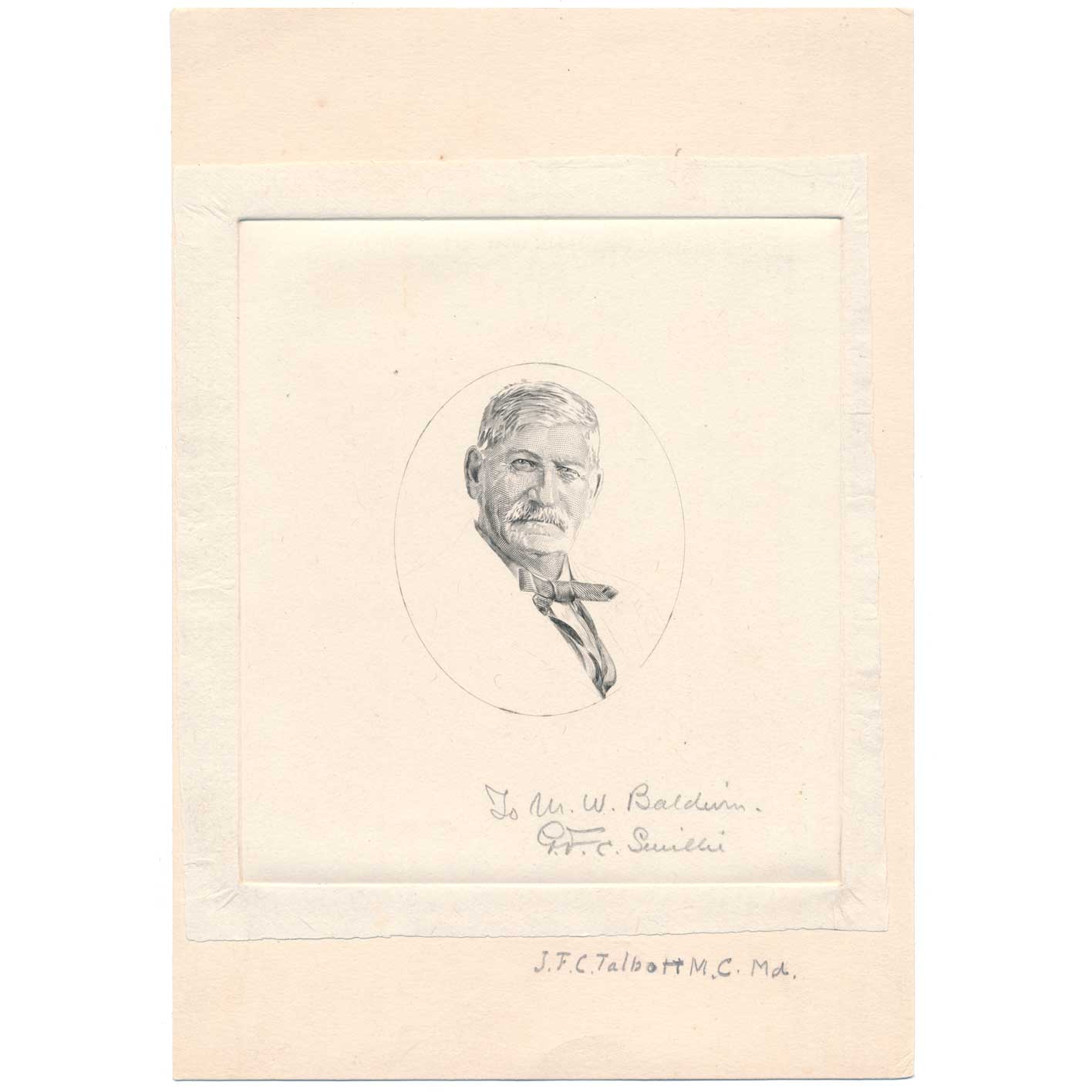 This progress die proof looks to be a gift from engraver G.F.C. Smillie to his colleague at the B.E.P. Marcus W. Baldwin.